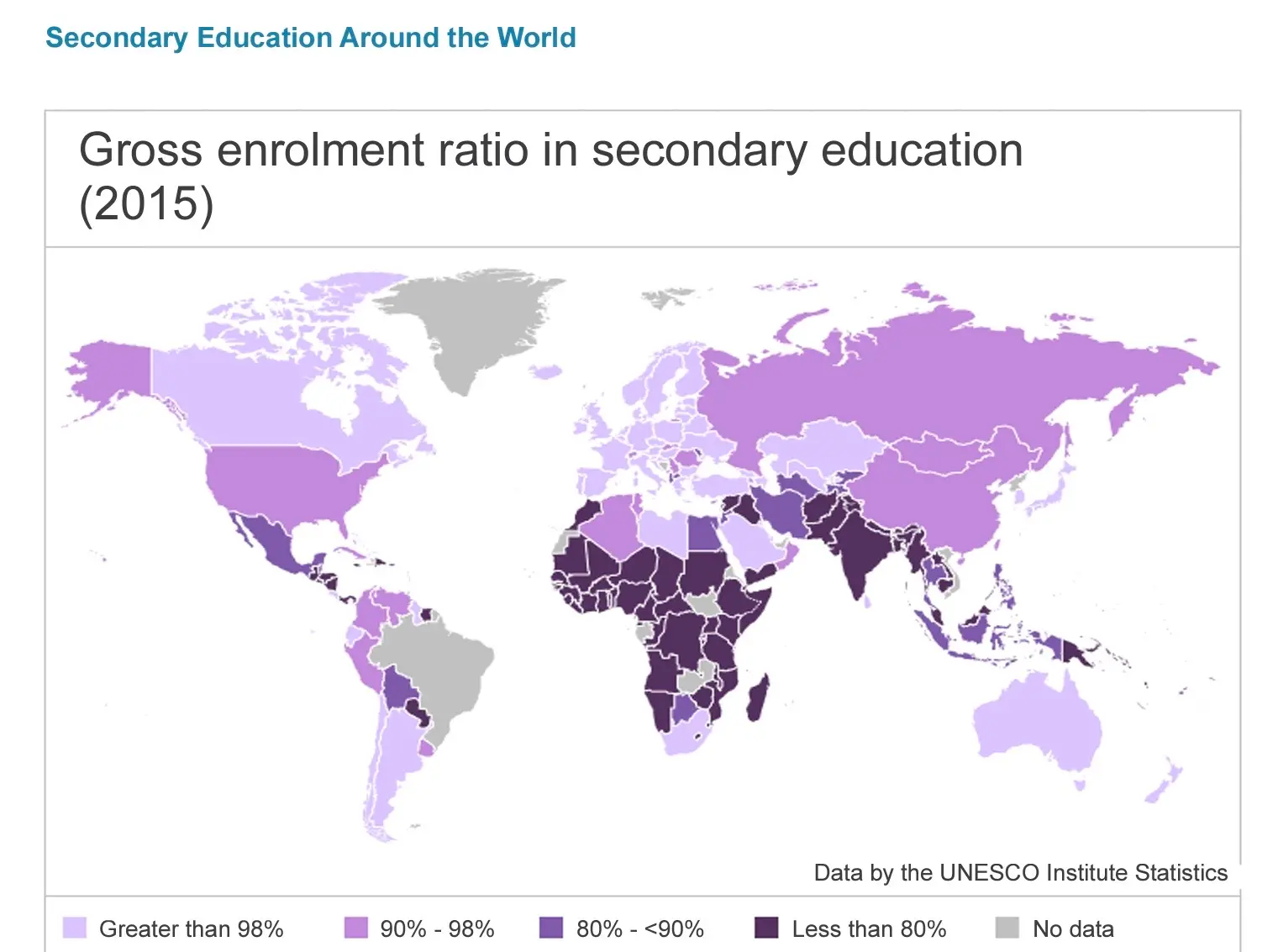 전 세계 교육 불평등의 실태를 보여주는 지도를 보여 주거나 지도 사본을 나눠 주세요. 클릭하여 화면을 확대할 수 있습니다. 또는 이 페이지를 문서로 다운로드할 수도 있습니다.
