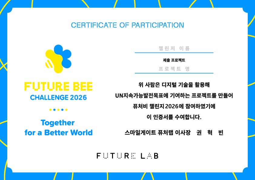 프로젝트를 제출한 모든 어린이/청소년에게퓨처비 챌린지 참가 인증서를 발급해드립니다!